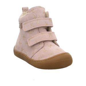 Der Barefoot Wigghi VL von Naturino bringt Glanz in graue Tage – mit seinem verspielten Glitzerschleifen-Print ist dieser Boot ein echter Hingucker! Außen überzeugt weiches Veloursleder, innen hält warmes Wollfutter kleine Füße mollig warm. Die flexible Gummisohle sorgt für sicheren Tritt und ein angenehmes Barfußgefühl. Drei praktische Klettverschlüsse machen das Anziehen kinderleicht und sorgen für optimalen Halt – perfekt für Alltag, Kita oder kleine Abenteuer draußen. Mit dem Barefoot Wigghi VL vereint Naturino Funktion, Komfort und ein liebevolles Design, das Kinder begeistert. Styling-Tipp: Kombiniere ihn mit Strumpfhose und Tüllrock für ein winterlich-verspieltes Outfit!