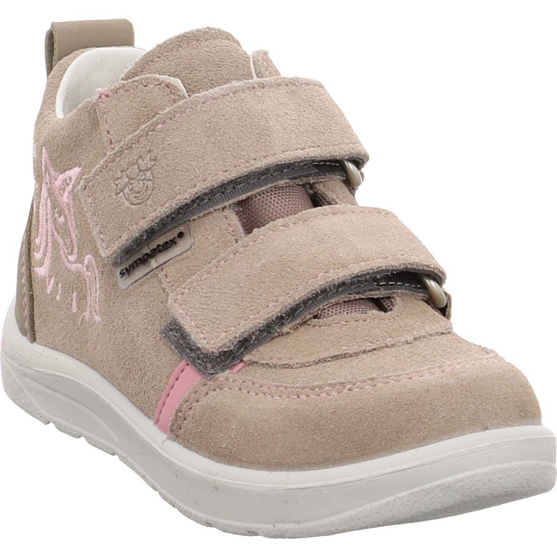 Zauberhaft und wetterfest: Der Ricosta Pepino Liv in der Farbe tundra einhorn kombiniert zarte Naturtöne mit einem verspielten Einhorn-Motiv – ein echtes Highlight für kleine Fantasiefans! Der sanfte Beige-Grau-Ton passt zu allem und bringt die rosafarbenen Details wunderbar zur Geltung. Das Obermaterial aus hochwertigem Veloursleder ist robust und gleichzeitig angenehm weich. Dank Sympatex-Membran bleibt der Fuß trocken – auch bei Regen oder Pfützenspaß. Innen sorgen Lederfutter und Decksohle für höchsten Komfort. Die mittlere Weite bietet eine bequeme Passform für viele Fußformen, und der praktische Klettverschluss macht das Anziehen zum Kinderspiel. Ricosta beweist mit diesem Modell, dass Alltagstauglichkeit und Märchenflair perfekt zusammenpassen. Styling-Idee: Einfach süß zu einer grauen Leggings mit Sternen und einem rosa Hoodie mit Kapuze.